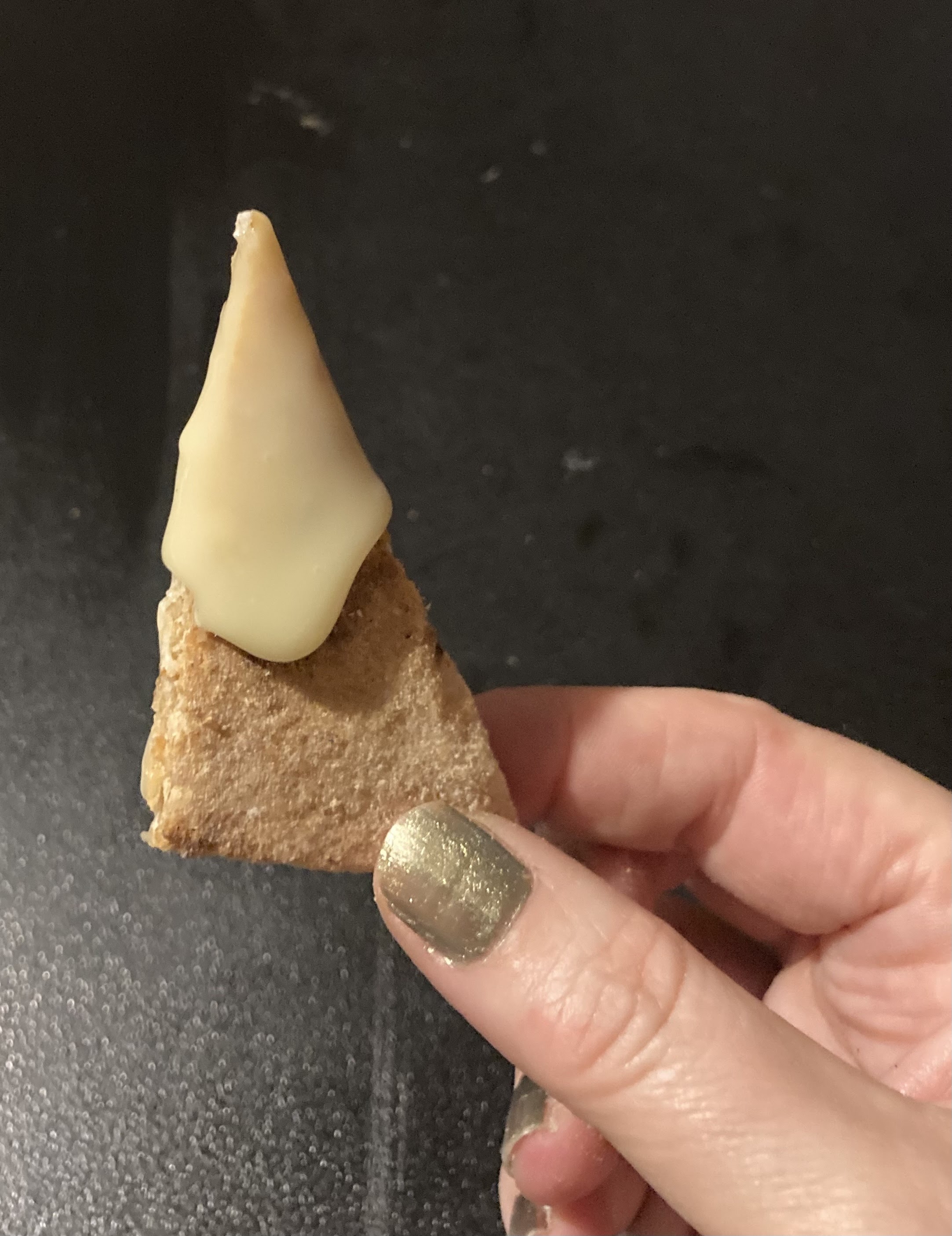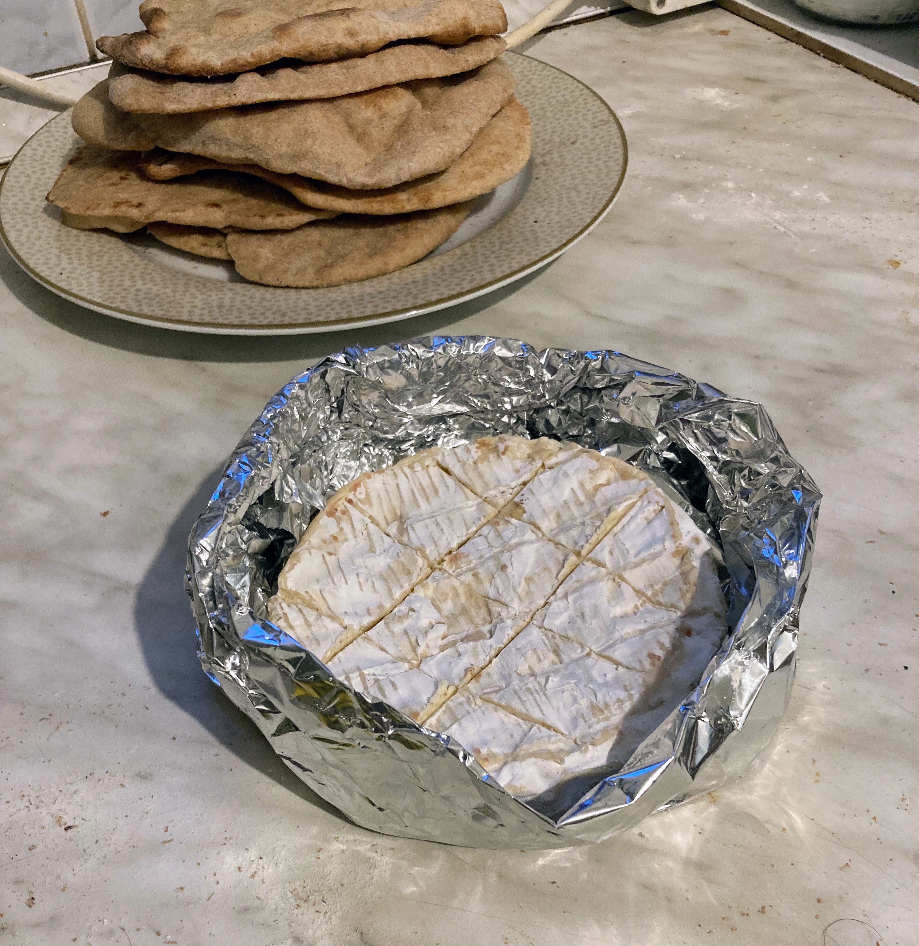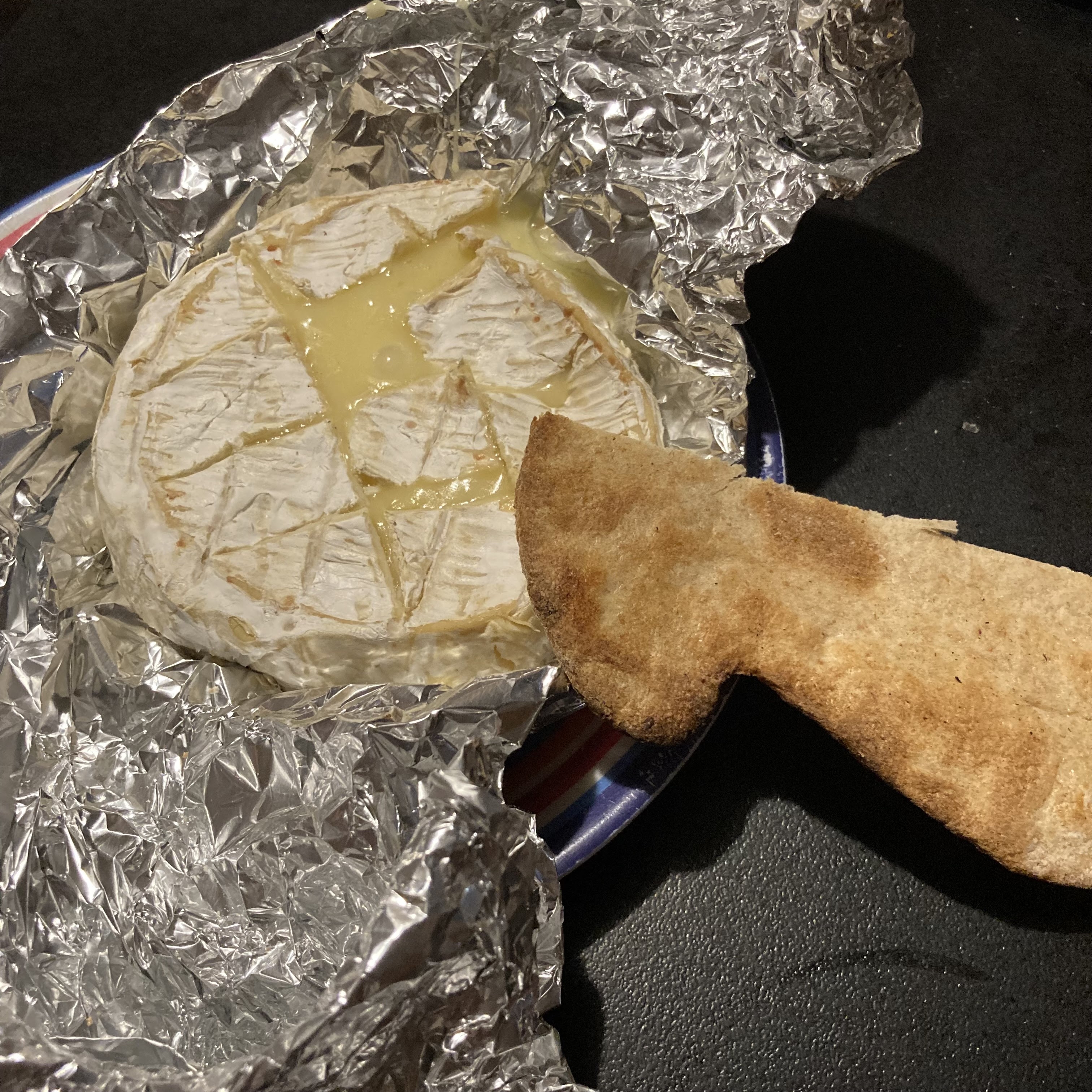 Az első tegnap este a hamis fondue volt. Akciós volt a múltkoriban a camembert, és vettem egyet. Kis alufólia fészekbe ültettem, a tetejét bevágtam, és a 200 fokos sütőben addig sütöttem, amíg pont jó nem lett. A pont jó egy relatív fogalom, de olyan 18 percig volt talán bent. Én minimalista vagyok a sajttal, nem fűszerezem, de nyugodtan meg lehet szórni a kedvenc fűszerekkel, és a fokhagyma kifejezetten finom tud lenni vele. Ebbe mártogattuk a megpirított pita cikkelyeket.