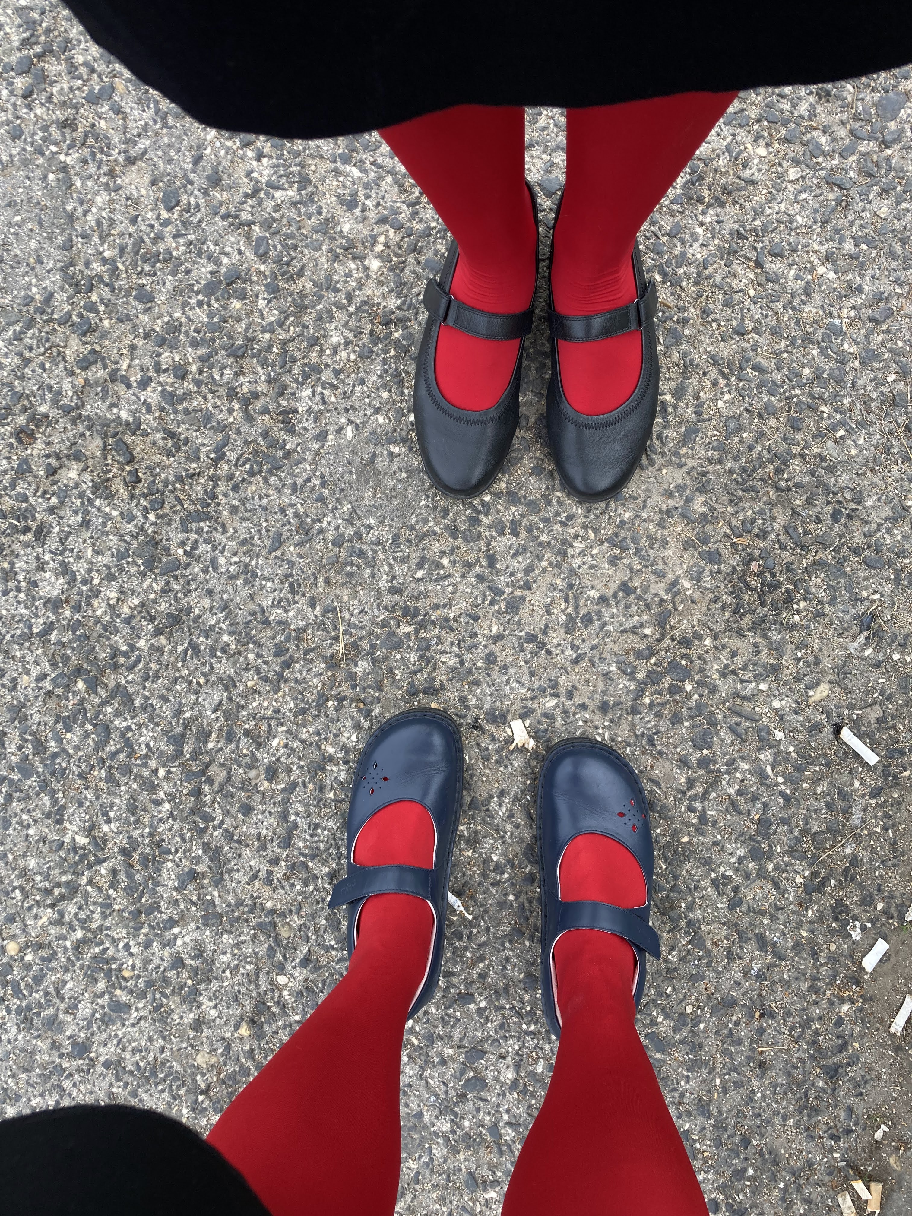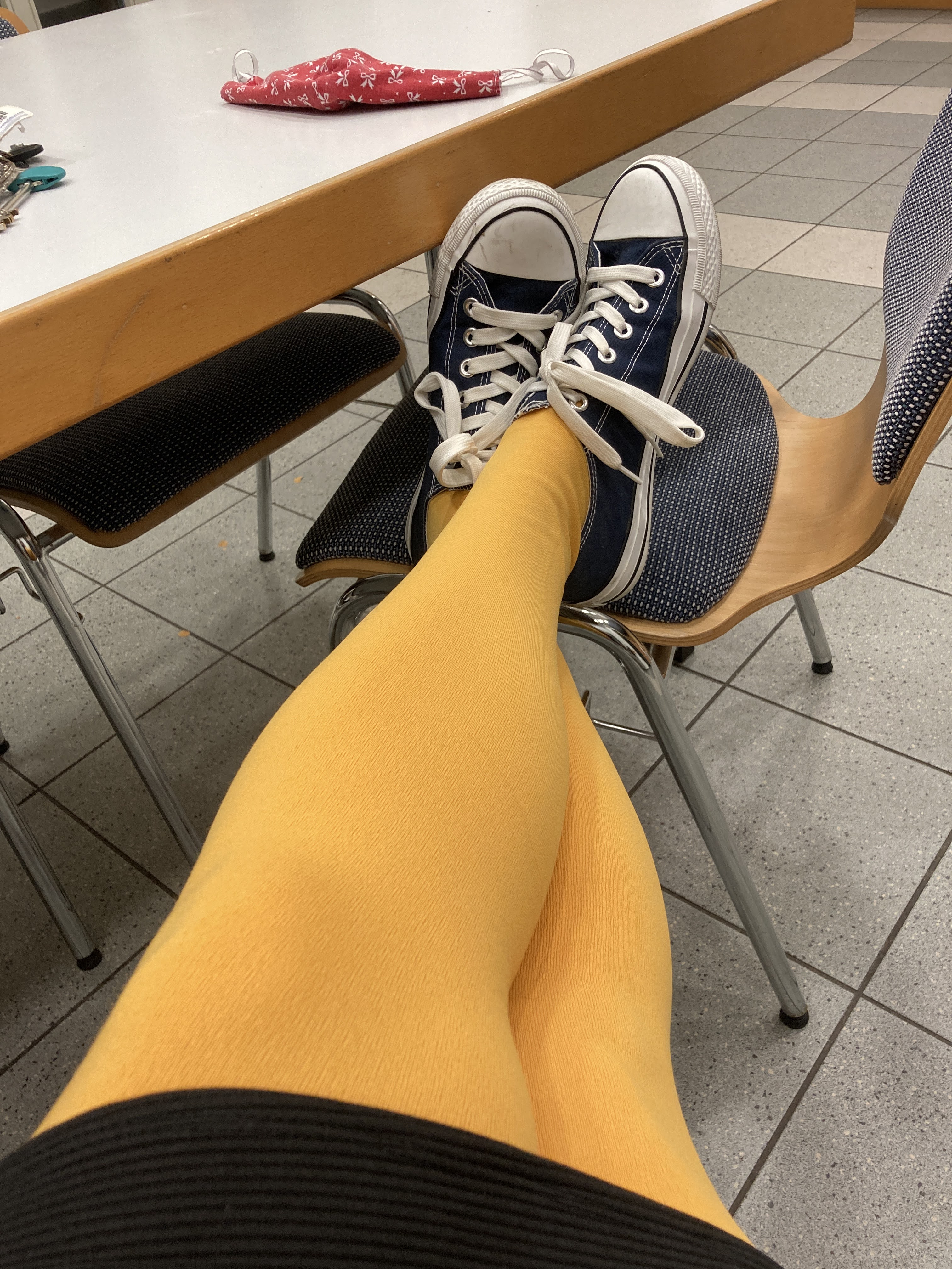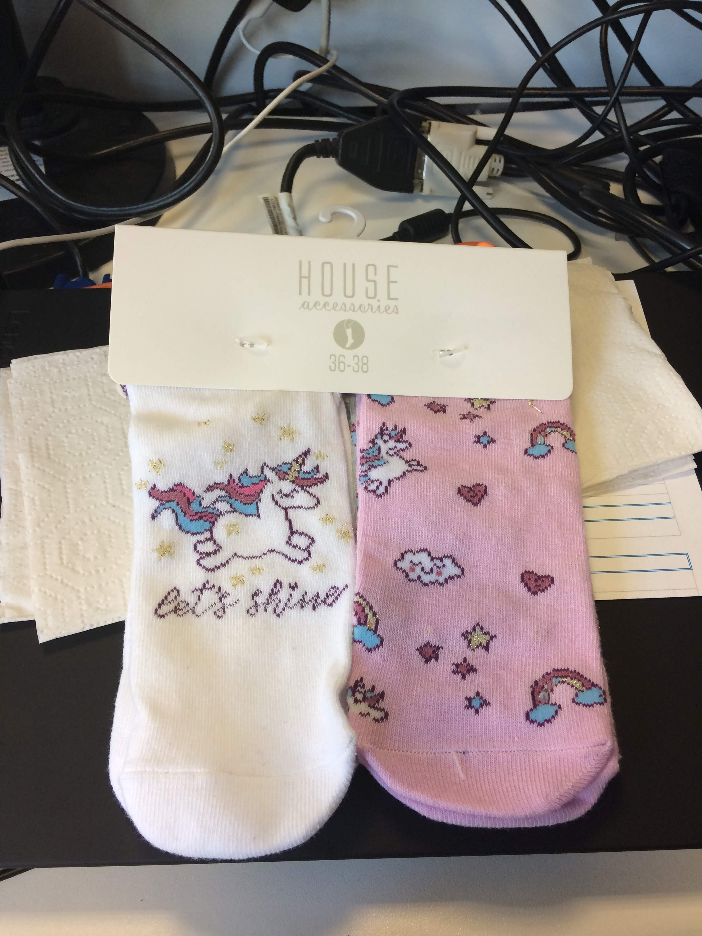 My love affair with socks started early on in my life. I didn’t really like tights when I was younger, and after an 18-month mission in Sal Lake City and Southern California I especially hated tights. Then suddenly fun colored tights in my size appeared on the market, and I started to wear skirts with fun tights as well, but my love remained fun socks. Socks are made even more fun when they enter the black hole that spits them out as a containerless Tupperware lid in a parallel universe, so I end up with all these awesome, single socks. I like to wear them mis-matched just to be able to continue wearing them.