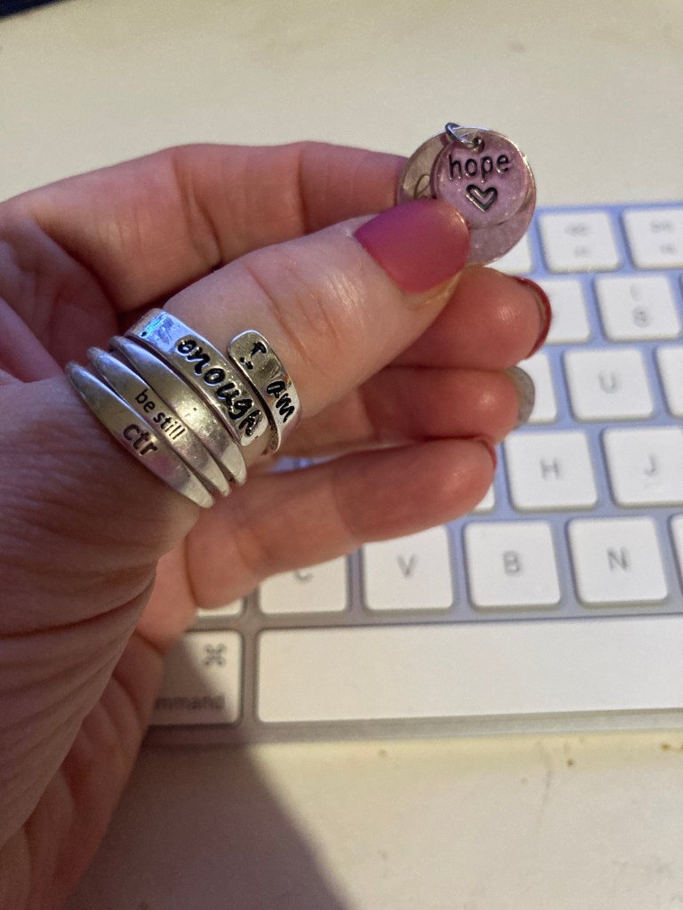 When in a Come, Follow Me session someone asked who Christ was, I wrote down my answer: the source of all my hope. He knows me, He knows my struggles, and He can give me a way to live without these one day. I know that, and I understand that, but being a very imperfect human being, I need a reminder for this. So when last week I realized that my necklace was not on me I panicked a little. How can I survive without hope 🤍? Well, as I was trying to calm down, I found my rings that had been missing for months, and then a delivery happened with a brand new ring… and then I asked the receptionist if anyone had turned in the remnants of my necklace… and someone did! I found hope!