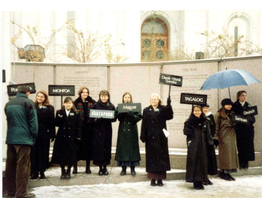 Fél tíz körül kezdtek szivárogni az emberek, akik a Mormon Tabernákulum Kórus (mostani nevén a Tabernákulum Kórus a Templom Téren) heti rendes tévés közvetítésére érkeztek. Ha épp nem volt zászlórúdhoz beosztásunk a héten, akkor gyakran mi is bementünk meghallgatni a A Zene és az Élő Szó előadását. Volt, hogy akkor is, ha be voltunk osztva, csak akkor ahogy végzett a kórus, spuri volt a zászlórúdhoz, ahol a nap másik nagy látványossága zajlott: a templom téri nővérek szépen felsorakoztak, és sok-sok különböző nyelven üdvözölték a látogatókat a Templom téren, és meghívták őket, hogy vegyenek részt egy idegenvezetésen.