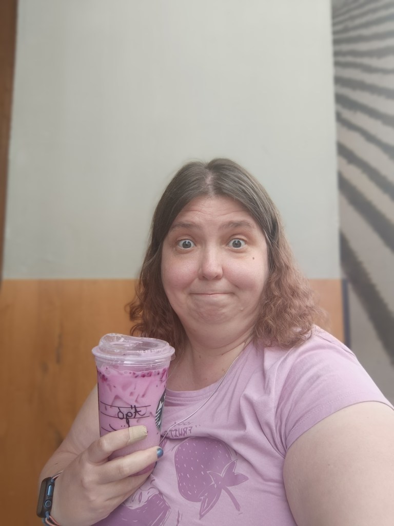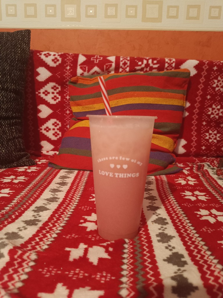 Két dolog volt vele a bajunk: az egyik az ára, a másik, hogy csak időszakosan lehet kapni. Ezért elkezdtünk kisérletezni, és ha nem is sikerült ugyanolyat összehozni, azért nagyon jó lett a saját italunk, aminek az összetétele sárkánygyümölcsital, kókuszital (kókuszos rizsital), jég, és ha éppen van otthon, egy kis kókusztej konzerv. Egy kis tejhabosítóval összekeverem, jéggel teli pohárba öntöm, és kész is van.